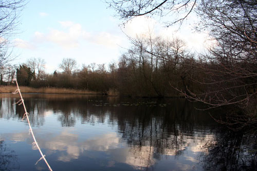 At the far end of the woods you will find in the mud and rhododendrons, the remains of a very large circular pool with an island in the centre. Next to this is an enormous dyke, still around 10ft high, and beyond that, next to the golf course, the shallow traces of several small ponds. No one knows for certain what this was and there are no written records. However, since the excavations at Hobs Moat have now proved the existence there of the original manor house built by Hugh de Odensil, Lord of the Manor of Solihull in Saxon and Norman times, it is highly possible that this was the site for the “Dom Muhle” the Lord’s mill where all the Lord’s tenants would have been forced to bring their corn, paying highly for the privilege of having it ground into flour. The only possible reason for the dyke seems to be as a dam for the pool. It is however, a mystery why it is so enormous. The island in the pool was to keep the ducks, which were a valuable source of winter food safe from predators, and the shallow pools would have been well stocked with perch and roach for the Lord’s use. |